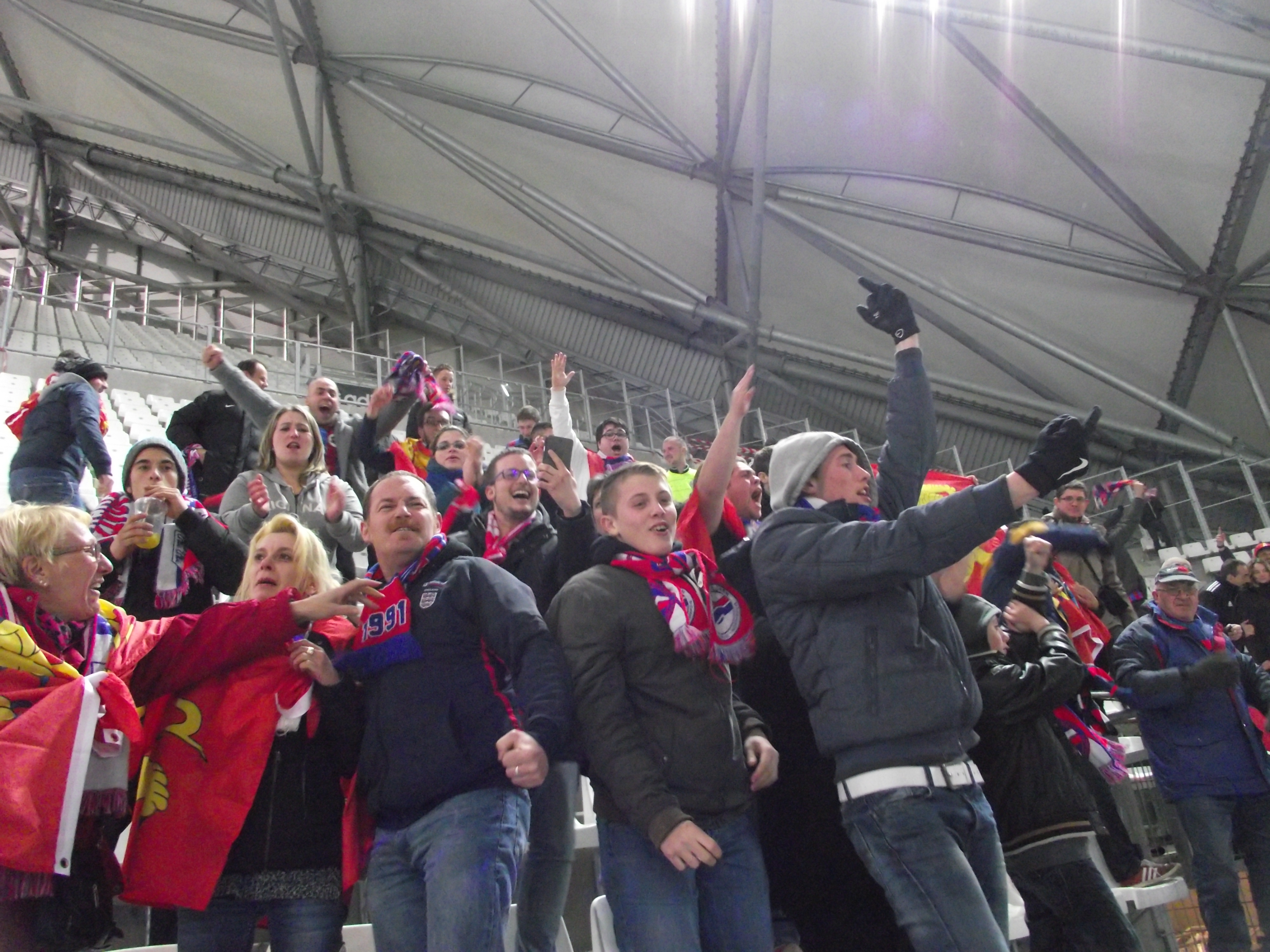 Chants constant pour le parcage même si je doute que l'on ce soit fait souvent entendre. Peut être après l'égalisation et le 3ieme but. A savoir qu'hormis les bâches aucun matos ne rentrera.