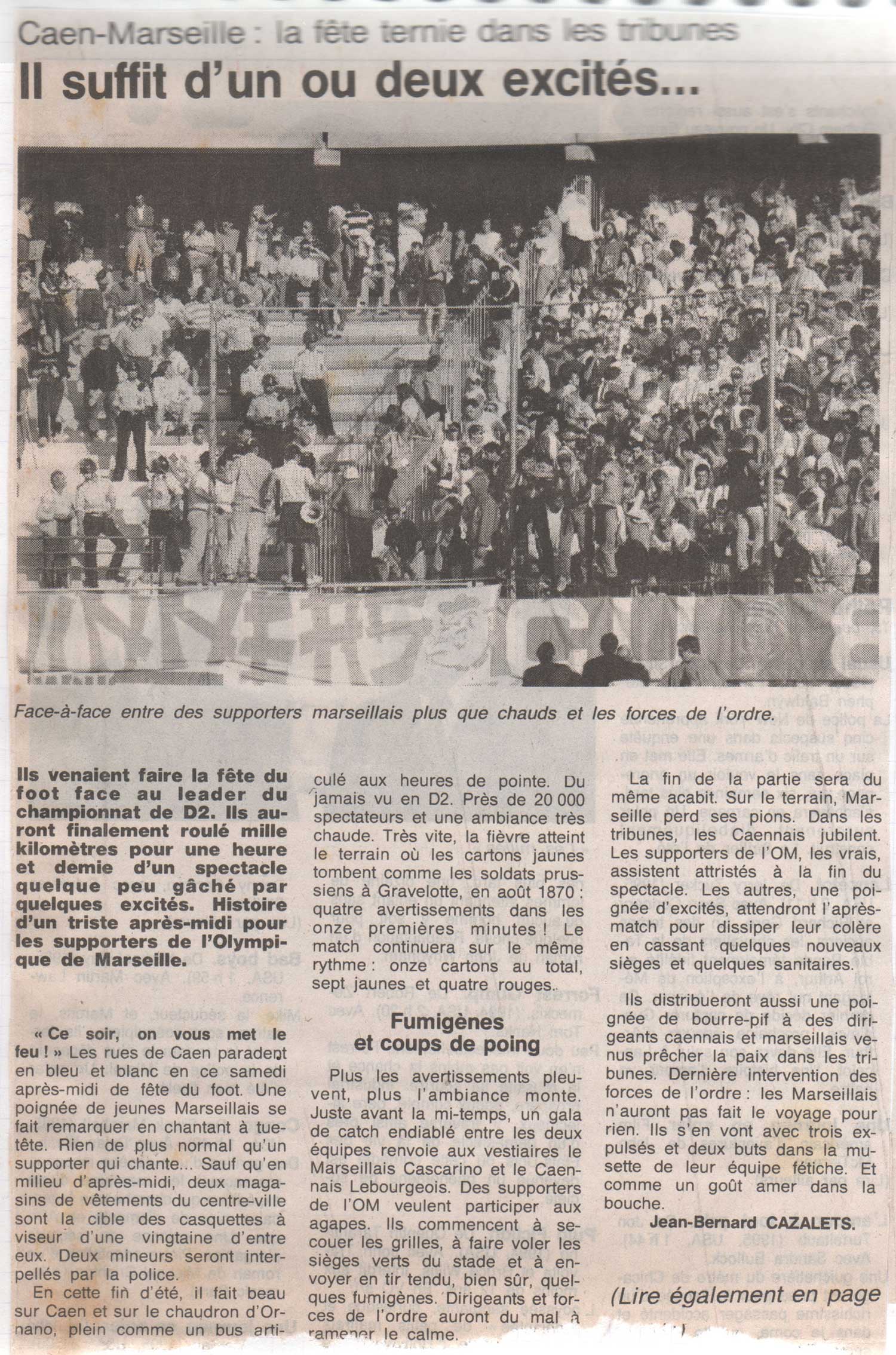 Merci bien ! Je me rends compte que j'avais déjà vu ces images, mais j'ignorais que c'était contre Caen ! Espérons que l'on soit désormais dans l'entame du crépuscule de cette politique répressive.. (autorisation encadrée des fumigènes, fin des IDS administratives.. rêvons un peu !) alors que les tribunes sont quand même beaucoup plus calmes qu'il y a 25 ans..