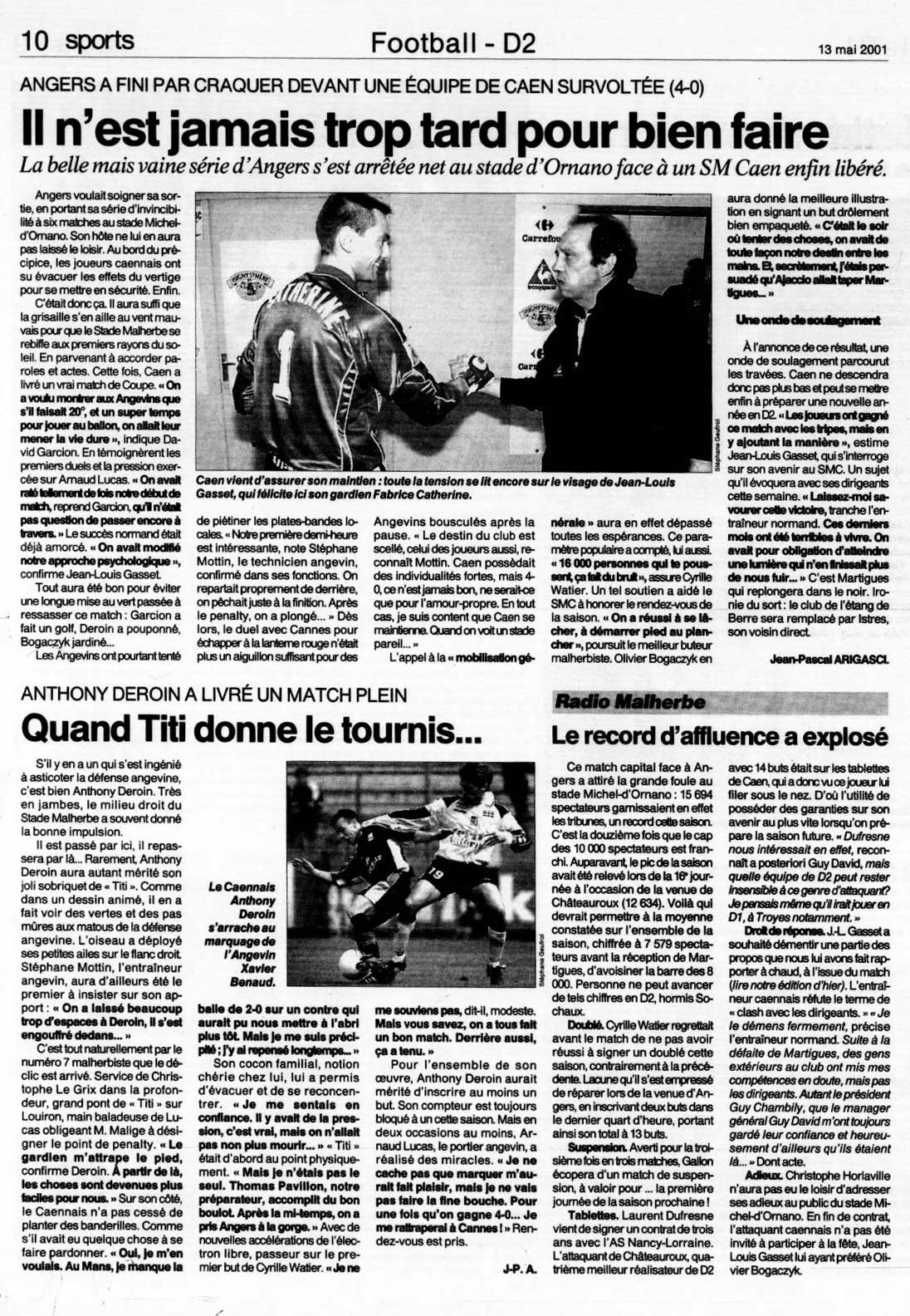 confirmation dans le compte-rendu du Ouest-France du 22 janvier 2001