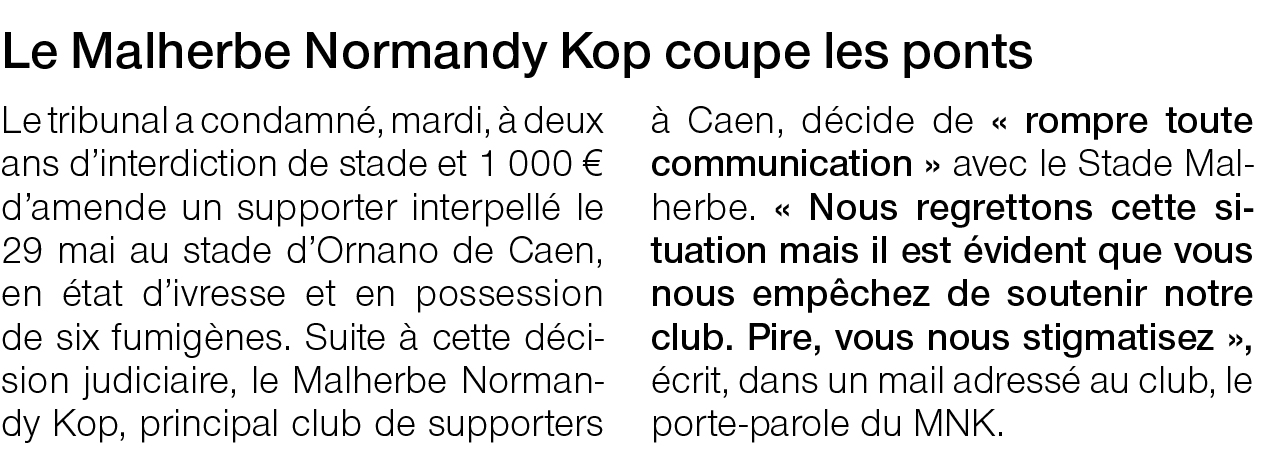 Re: Communiqué du Malherbe Normandy Kop : "Au revoir"