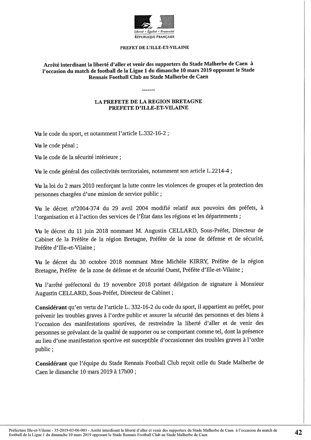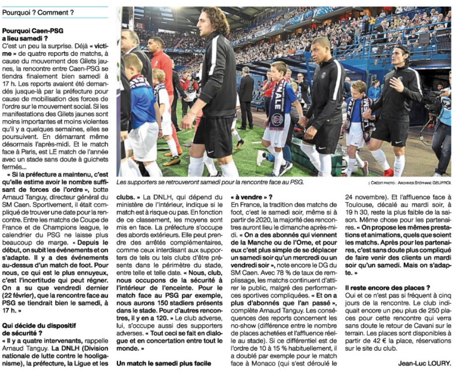 on en apprend plus sur les tractations LFP/préfecture (Ouest-France du 26 février 2019)