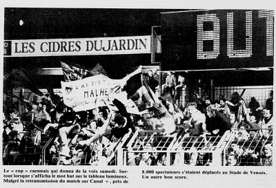 Avec un fameux chant : "au feu les pompiers y'a l'parlement qui brule, au feu les pompiers l'parlement brulé" puisque le match avait lieu quelques jours après que le parlement de Bretagne à Rennes ait été dévasté par les flammesbenoit caen a écrit :94/95