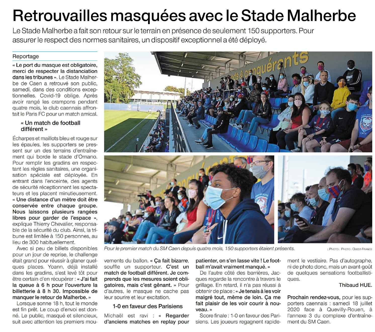 - Samedi 18 juillet : SM Caen / Quevilly RM (N1) sur l'annexe 3 du complexe de Venoix, à huis-clos.