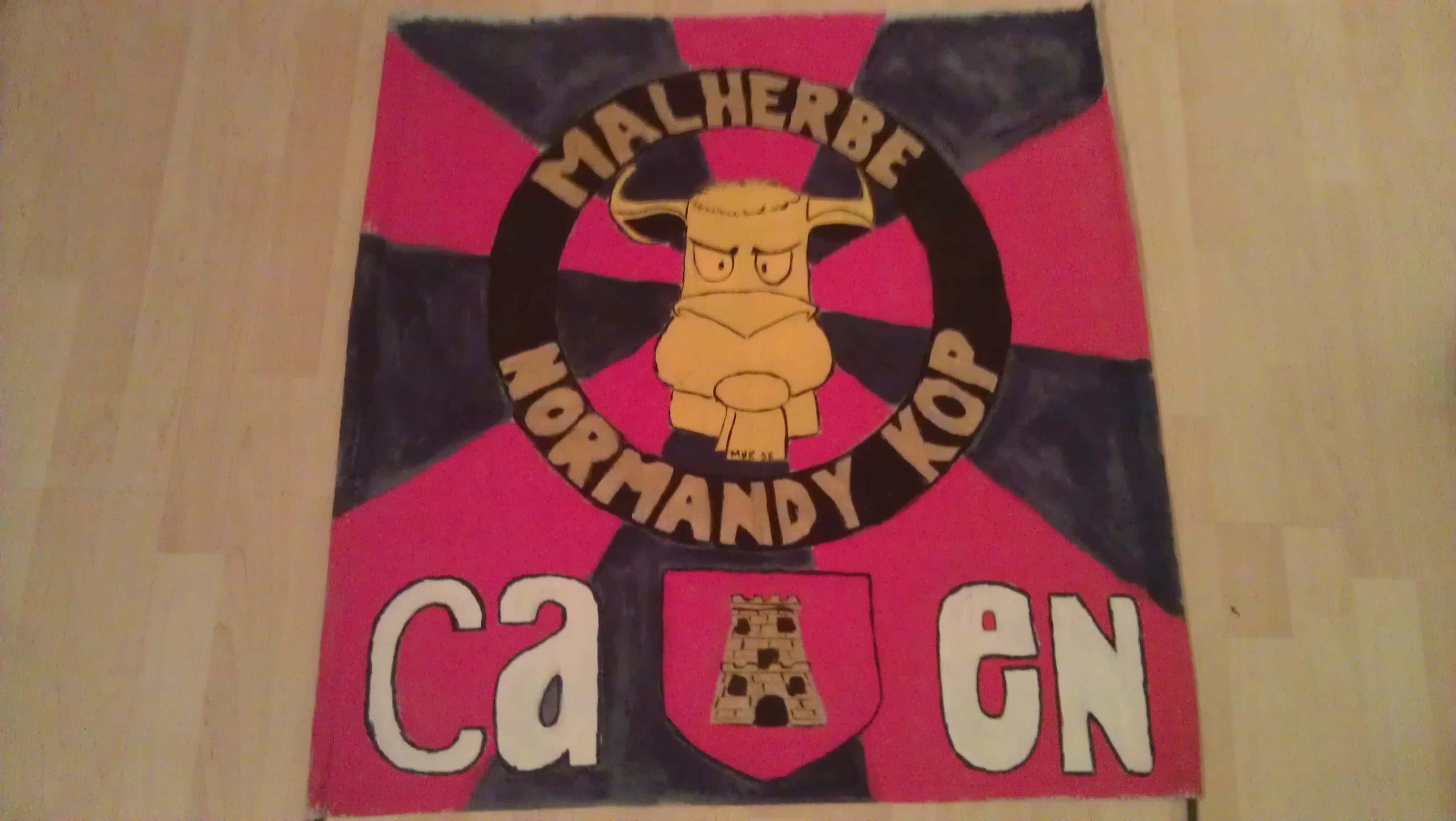 Oui c'est de la peinture doré et la vache c'est du jauneSEBUK mancunia a écrit :Beau travail! Je ferrais la meme remarque que Chatouf concernant un contour noir pour les lettres et le blason, mais c'est histoire de chipoter... Il a vraiment une belle gueule! C'est de la peinture dorée les lettres "MALHERBE NORMANDY KOP?"clement78 a écrit :Voila j'ai fini l'etandard merci sebuk pour les conseil