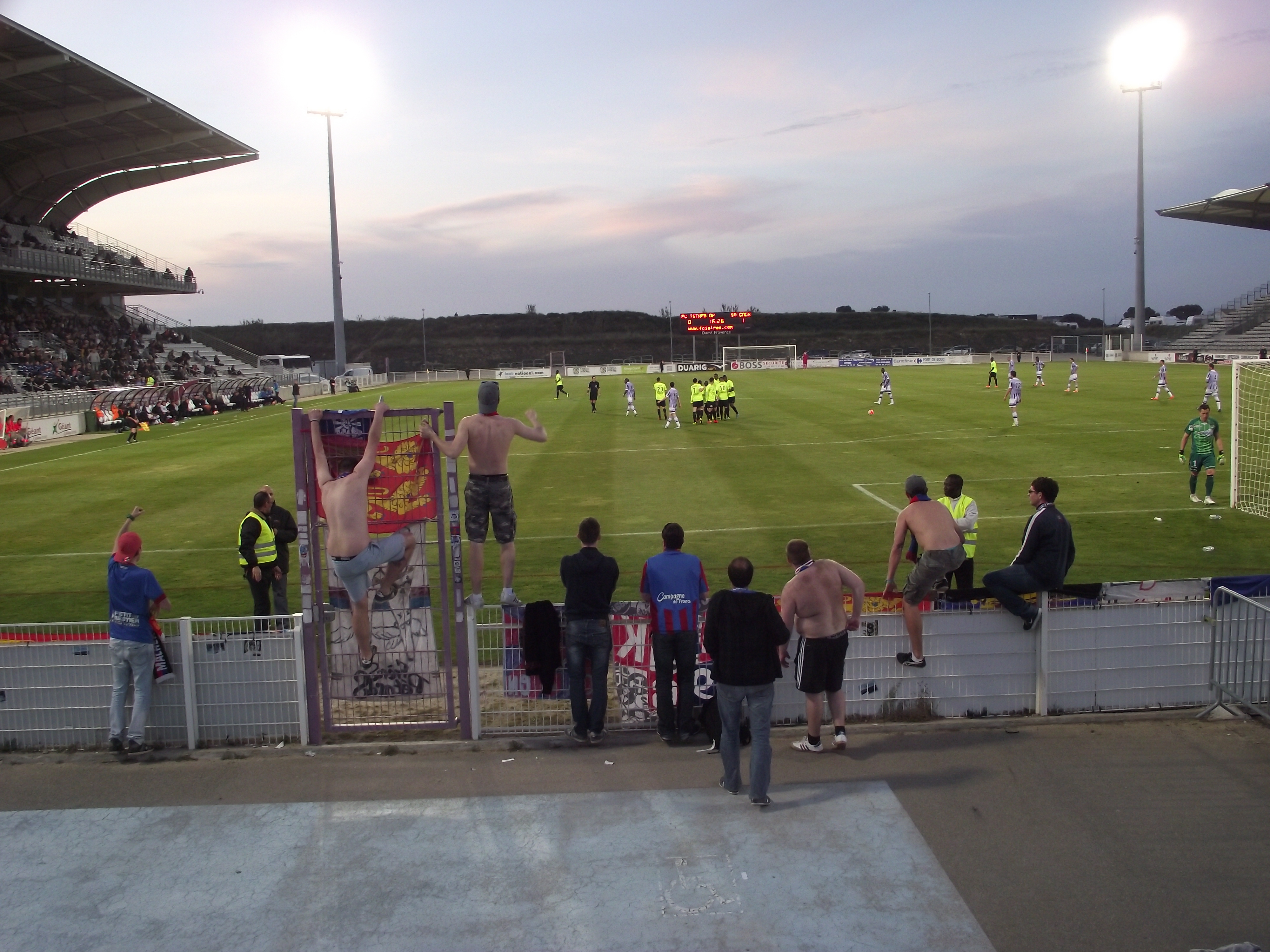 On rentre en parcage on bache on chante et on voit deja que ce stade doit sonné très souvent creu! Le match commence on est une petite quinzaine en parcage une dizaine à chanter et on recoit des messages comme quoi on entend que nous! Logique on est les seuls à gueuler! On est envahit par les moustiques qui se feront grave plaisir en nous défonçant tout le corps a coup de piqure! Sur le terrain ca joue pas top on gagne on perd on fait la fete! On gagne finalement le match même si c'etait pas bandant on est content on a 6pts de plus dans la musette!