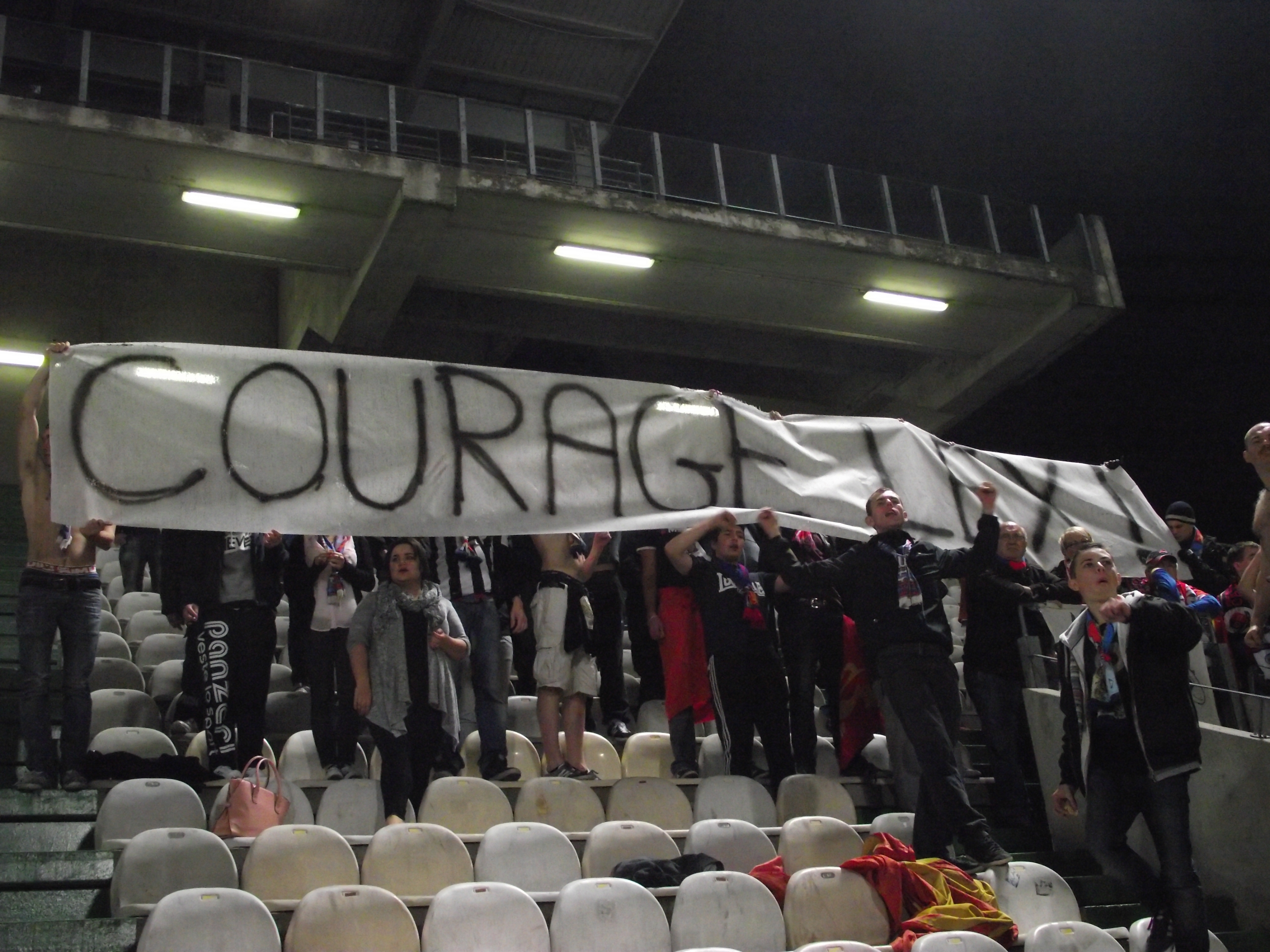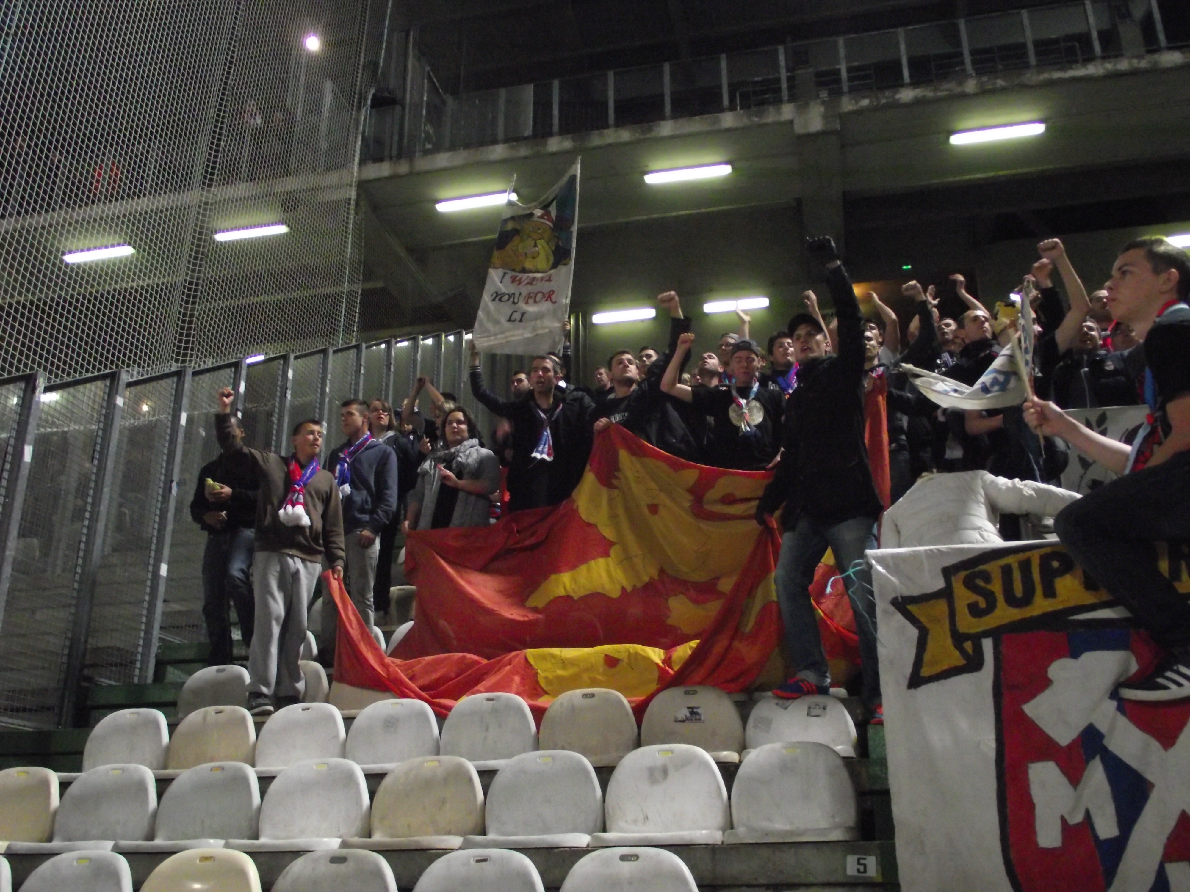 La centaine de présents donnerons de la voix durant 90 minutes même avec le 2-0, et faut dire que nous avons bien profité de la grève des groupes ultras messins dût à un leur président qui leur interdit toutes animations ... Les gestuelles sont bien suivis par l'ensemble du parcage, grâce à un Super Olaf en tant que chef d'orchestre, dylan au tambour où encore Nico.