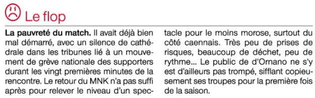 Merci au SMC de leur solidarité en ne faisant pas taper dans les mains à la 14éme minutes.