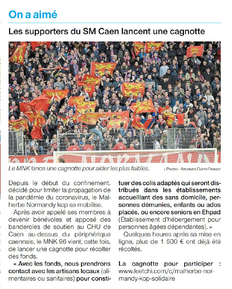 Sur le terrain comme en tribune, nous avons toujours été particulièrement solidaires face aux gros adversaires. Aujourd’hui notre ennemi est d’un tout autre genre, mais notre solidarité Malherbiste et notre férocité viking poseront un obstacle redoutable sur son chemin!