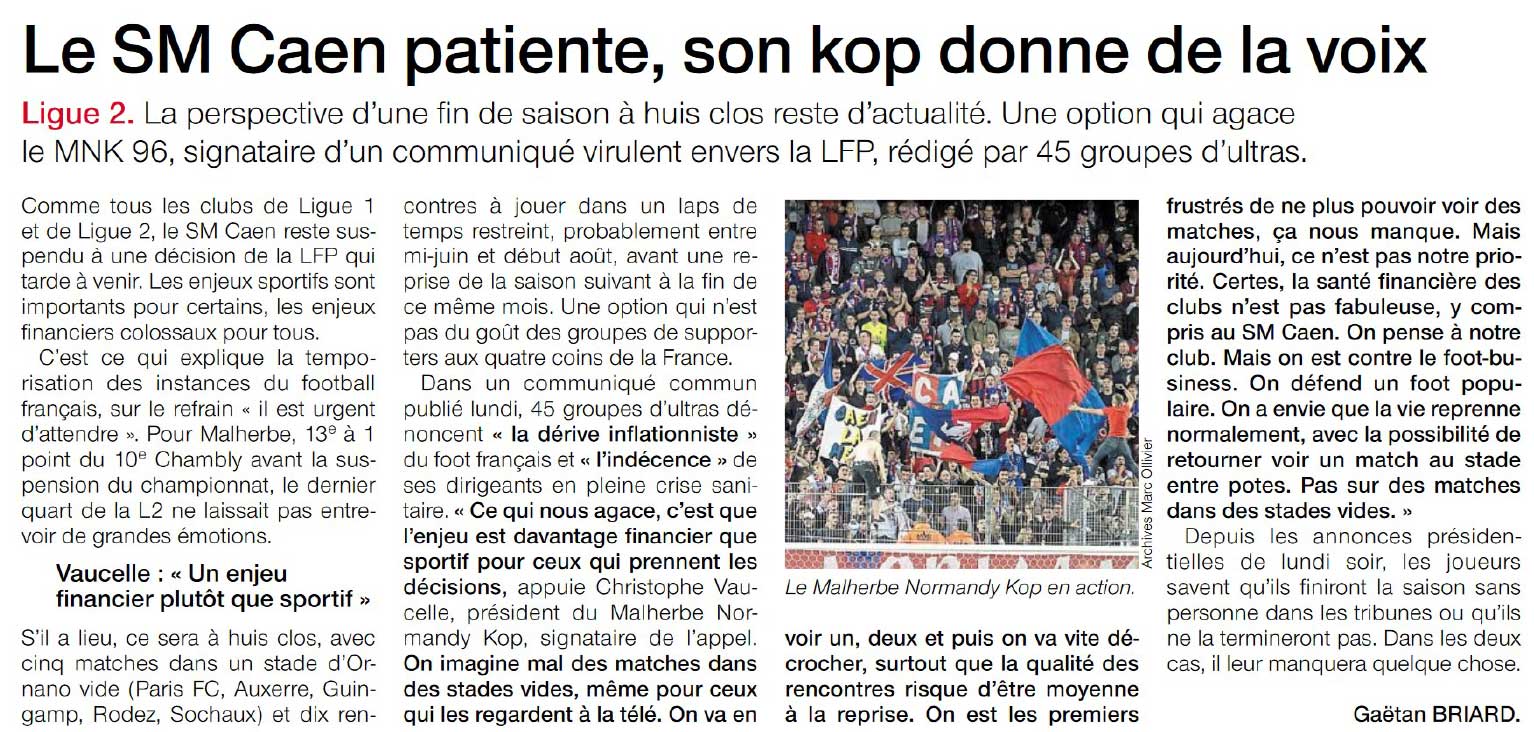 Il n’y aura plus de football avant longtemps, mais notre plus gros combat ne fait que commencer. La triste réalité met aujourd’hui le peuple Malherbiste face au même ennemi que la planète entière.