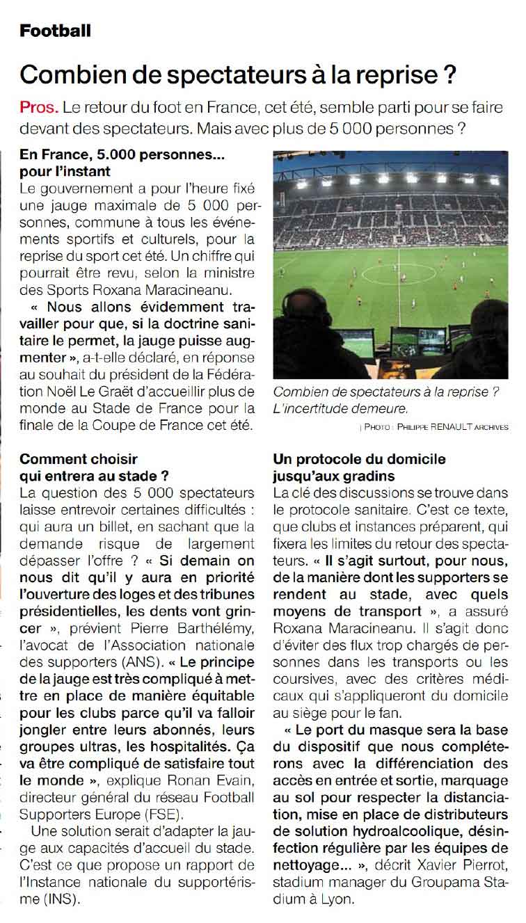 réouverture des stades à partir du 11 juillet avec une jauge de 5 000 personnes pour le moment