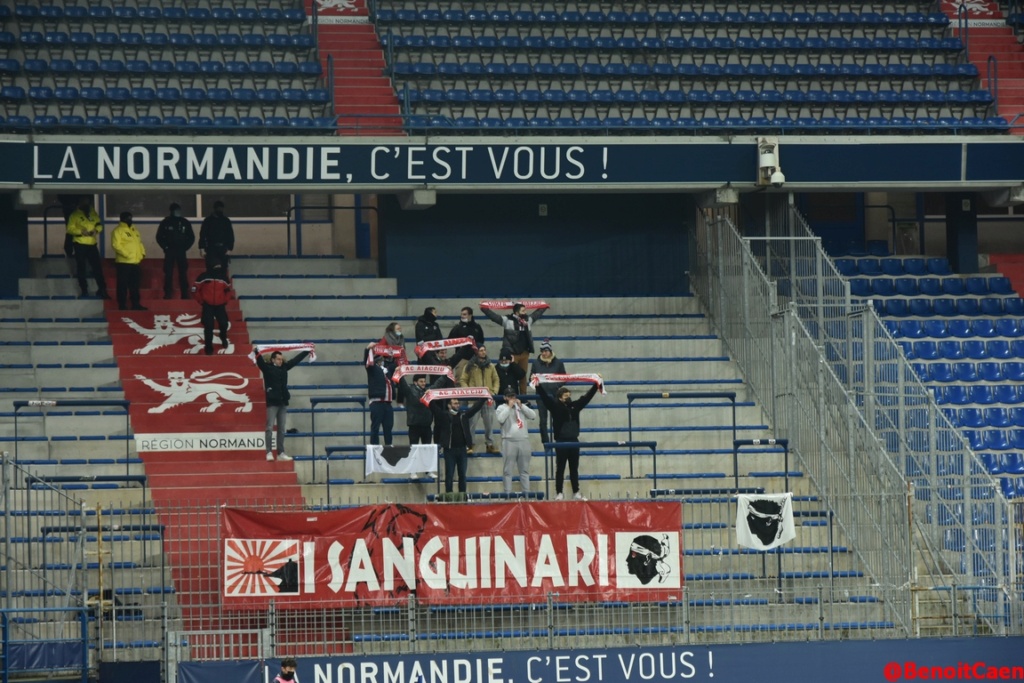 En face, les supporters ajacciens étaient une douzaine (j'ai vu 3 voitures sur leur parking). Pas vraiment d'activités durant le match sauf sur certains actions de jeu en leur faveur.