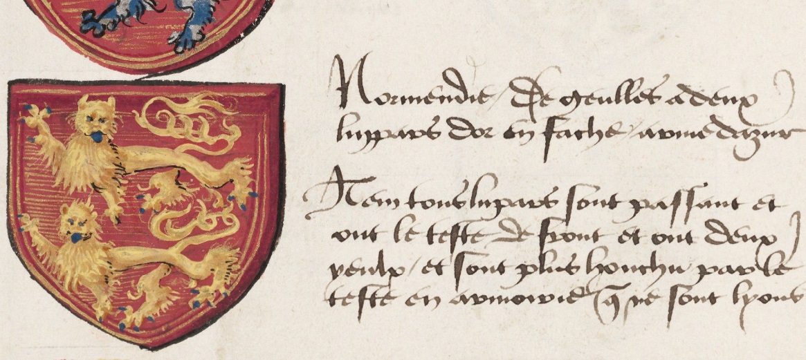 Armoiries normandes à deux léopards dessinées entre 1400 et 1600