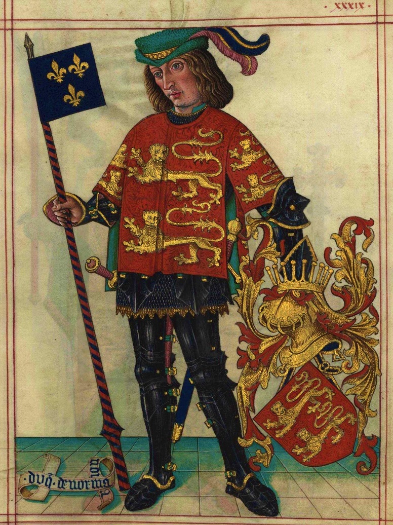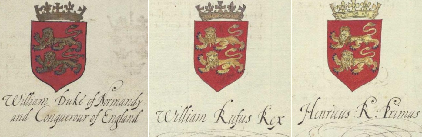 Toujours dans ''Holme's Book of Arms (1445)'', représentations des rois Guillaume-le-Conquérant, Guillaume-le-Roux, Henri I Beauclerc et Étienne-de-Blois.