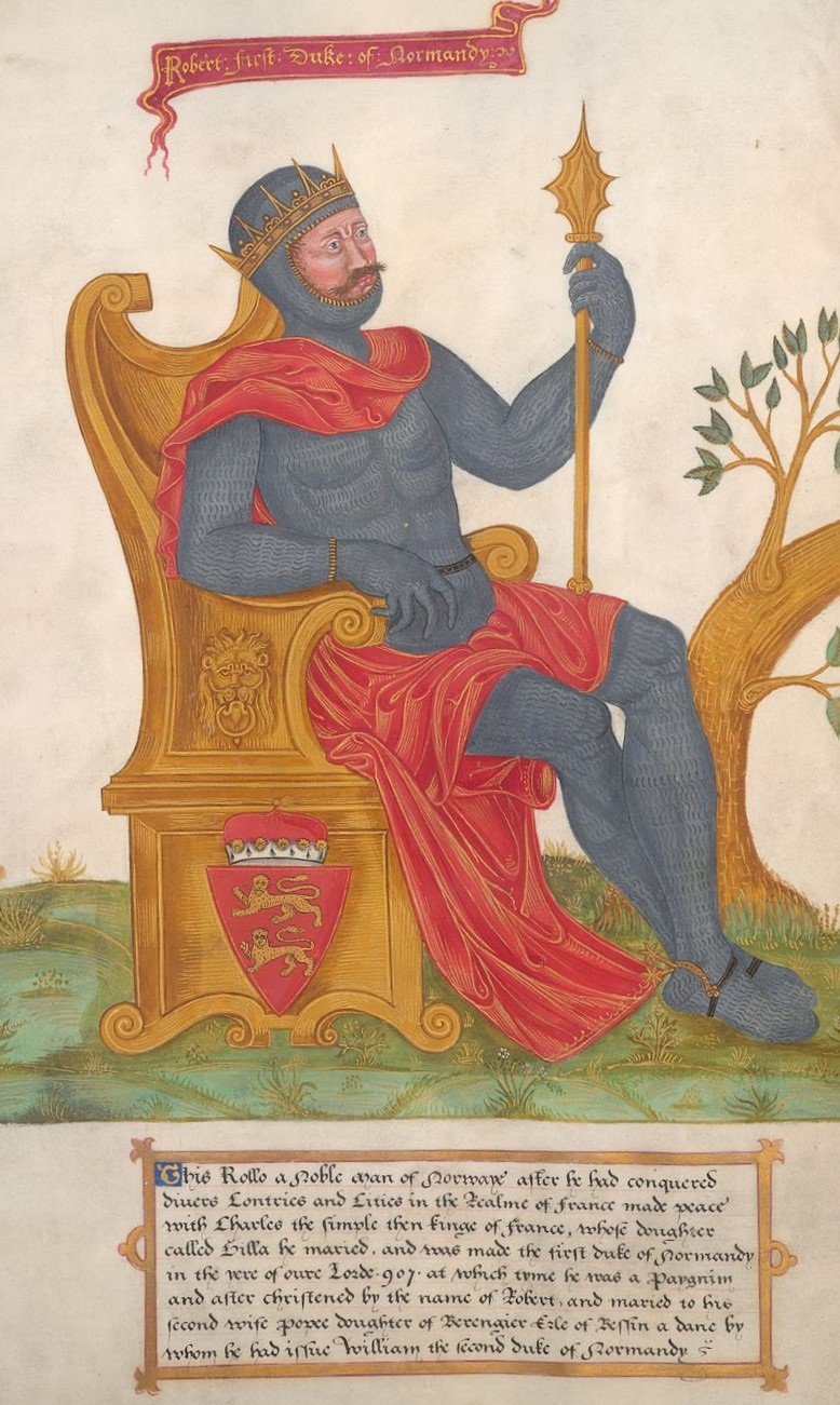 Représentation de Rollon dans ''Genealogy of Queen Elizabeth I'' (1537) :