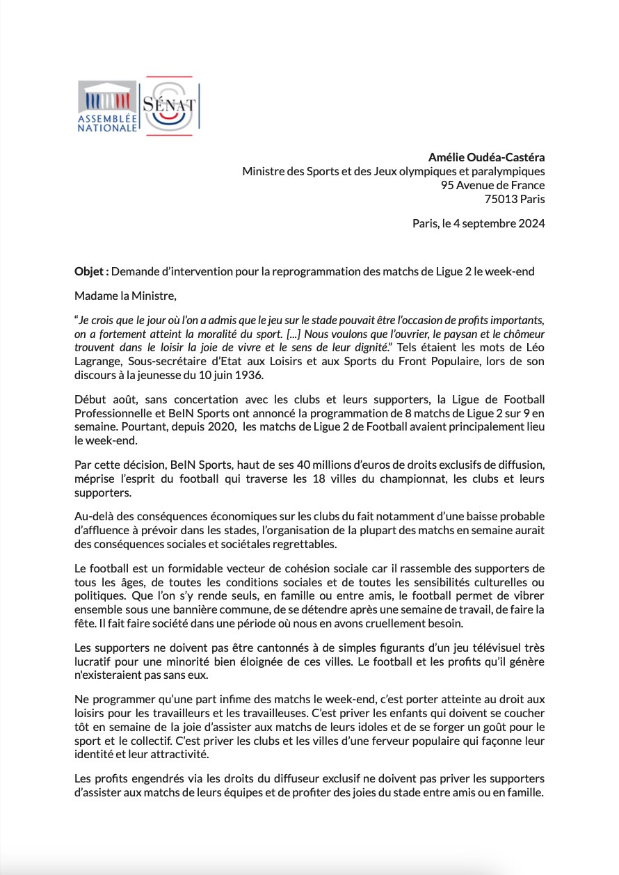 les deux députés de Caen signent cette lettre à la ministre des sports concernant les horaires