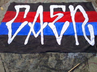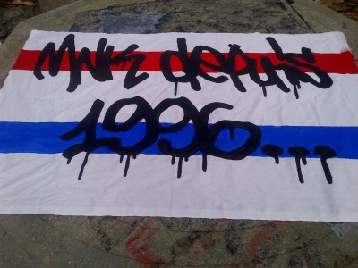 Voila donc j'ai fais un drapeau ! ( 2mx1m ) Les lettres ne sont pas encore cousus et possibilité de rajouté " 96 " j'rajoute ou j'laisse comme sa Qu'en pensez-vous ?
