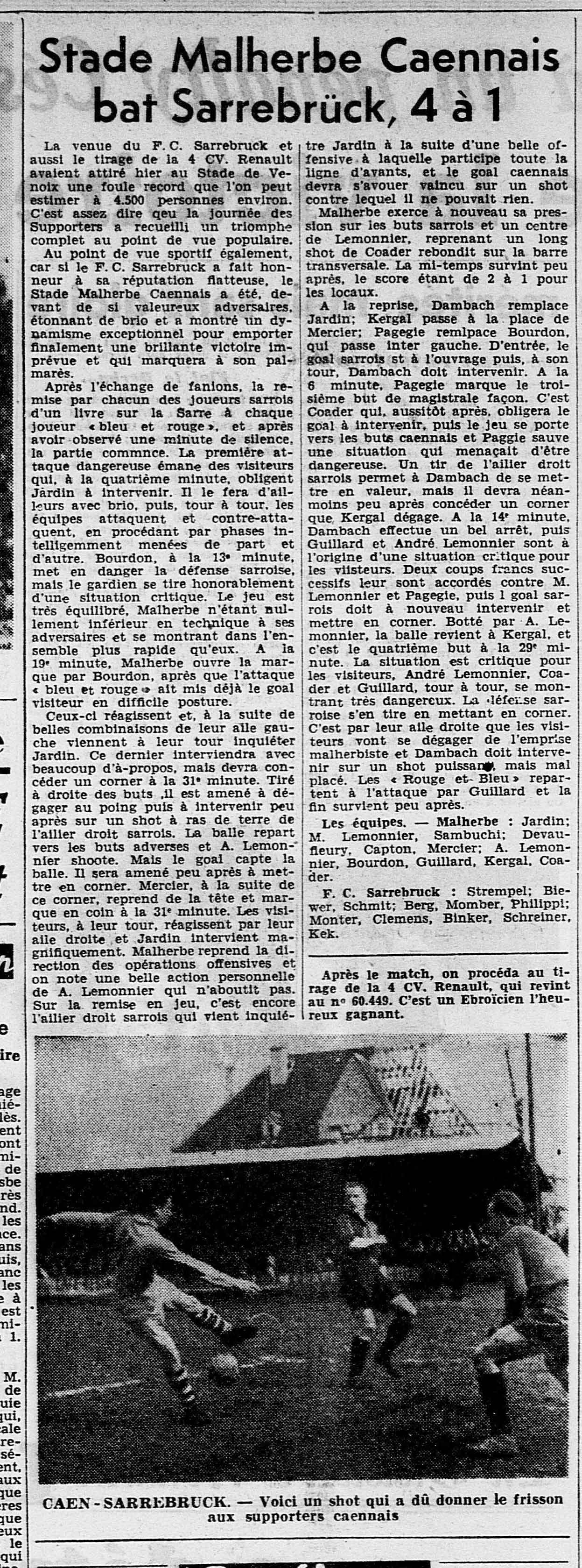 à l'occasion d'un Caen - Sedan du 17 décembre 1950