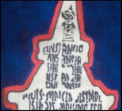 Bel étendard en effet! Quand tu parlais d'un truc visible à plusieurs niveaux j'imaginais des tout petits dessins, mais en effet, c'est faisable avec de l'écriture! Et ça rend très bien.