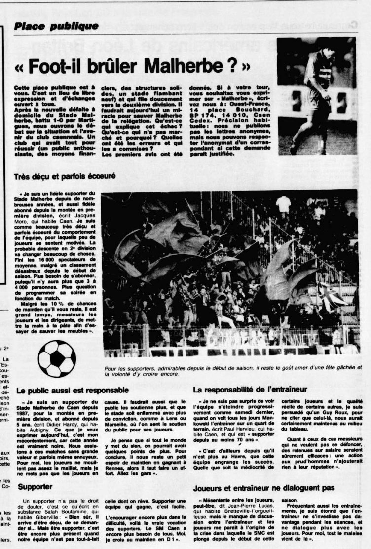 bien avant les grincheux d'Allô Malherbe, ceux du courrier des lecteurs de Ouest-France (fin de la saison 94-95)