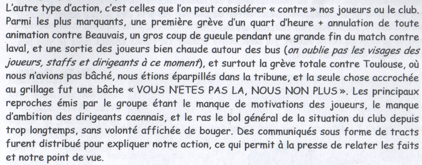 Caen - Toulouse saison 2002-2003 et une des premières grèves du groupe il me semble
