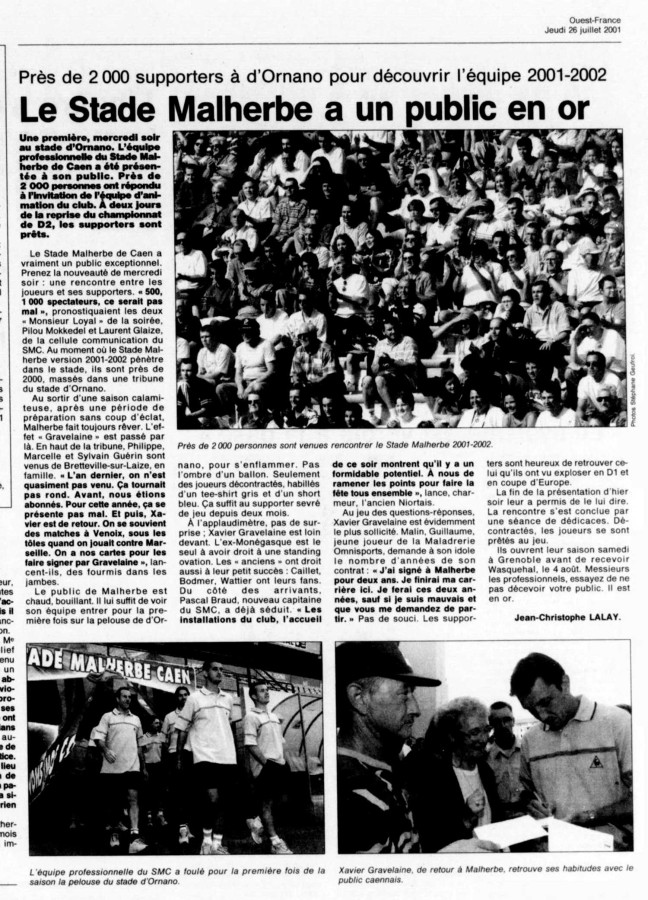 présentation de l'équipe le 25 juillet 2001 avec la présence de matos du groupe (collection perso)