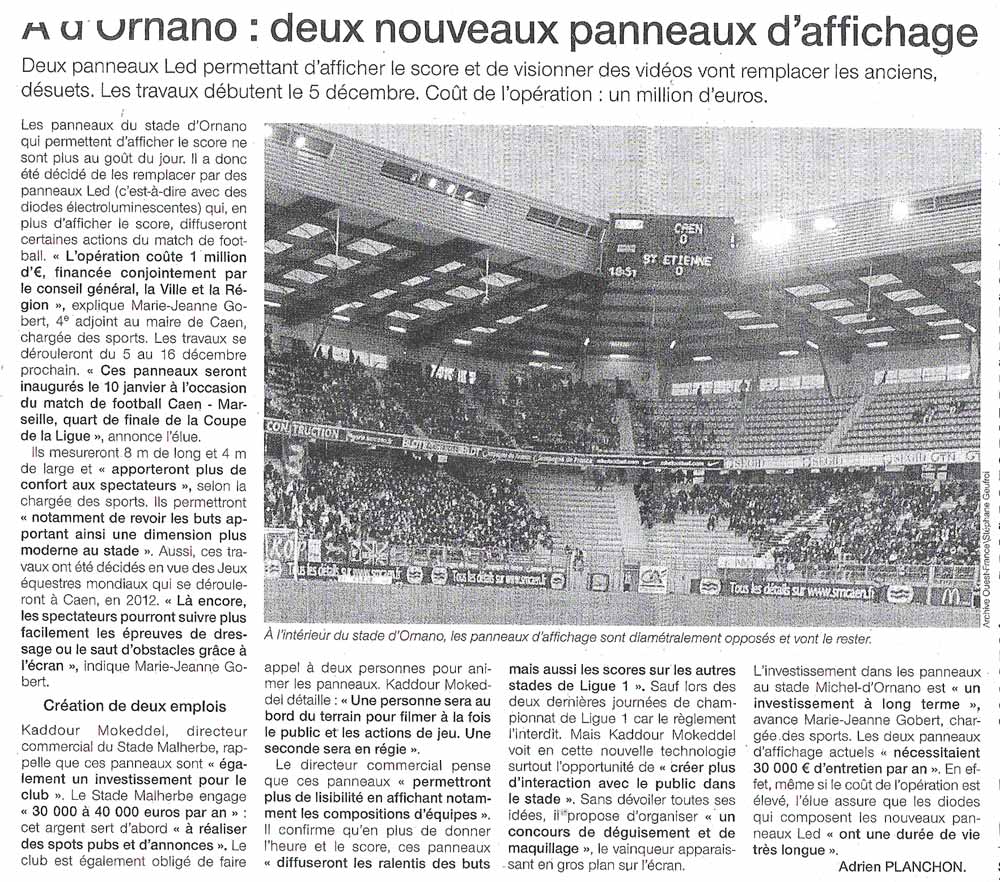Le club a t-il communiqué d'autres infos pour l'installation des nouveaux panneaux d'affichage normalement prévus il y a déja un petit moment dans le stade ?