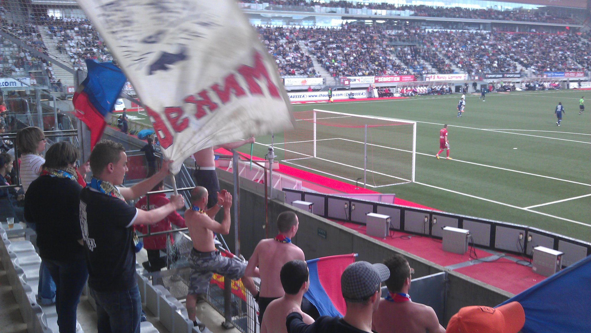 Pour ma part, le stade était d'une architecture bizarre, vu de l'extérieur on aurait pu dire un centre commercial de loin, et de l'intérieur il faisait assez petit mais ayant du charme. Le match a été agréable à voir, même si Nancy c'est montré beaucoup plus dangereux... On marque, j'ai eu du mal à m'en rendre compte tellement que c'était la confusion de l'autre côté ! Le public nancéen siffla petit à petit ces joueurs, puis le stade s'enflamma après un but refusé sur hors jeu. Mais un second fut accordé, la fin fut longue, mais on a réussi à garder le point ! Seube et Proment vinrent nous voir en fin de match, ça fait plaisir, car faire tant de bornes sans rien sa aurait pas été terrible ...
