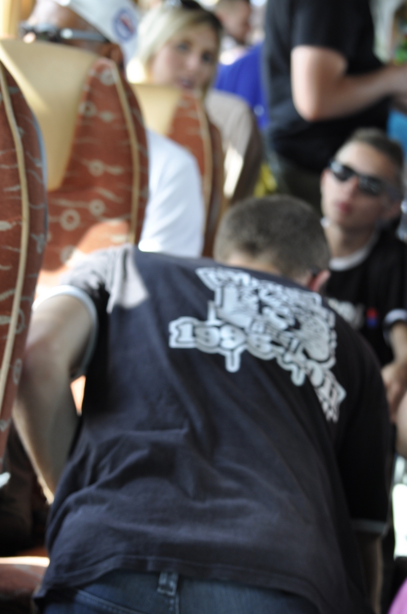 C'est avec Mantow que nous nous donnons rdv la veille vers 21h30 histoire de se mettre quelques bières pichets dans la gueule! On rode rue de la soif puis direction un bar de nuit où on rencontrera dans un premier temps 2 Ecossais, puis un groupe de MARMULES supportant l’équipe de Man U on leurs expliquent qu'on bouge demain à l'autre bout de la France et que le départ est à 7h30, on trinque, on parle foot bizarrement notre Anglais est meilleur lorsque nous sommes alcoolisés! On s’enchaîne la tête puis vers 3h45 on décale, soirée CARNAGE! On se réveille le lendemain matin sur les coups de...