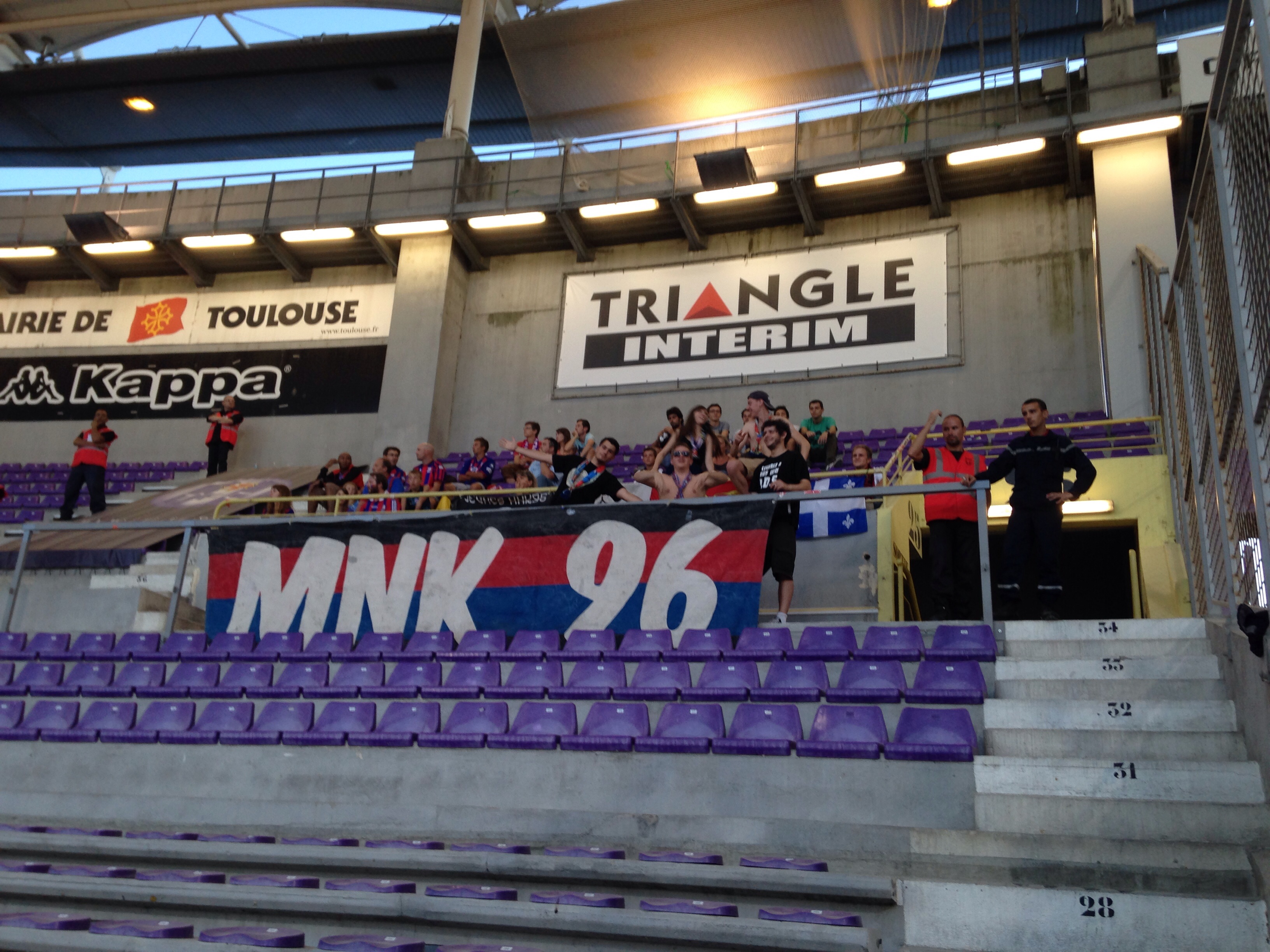La première mi temps est dominé par Toulouse, on marque, vercoutre vient fêter le but avec le parcage qui est situé tout en haut de la latérale au niveau du point de corner.