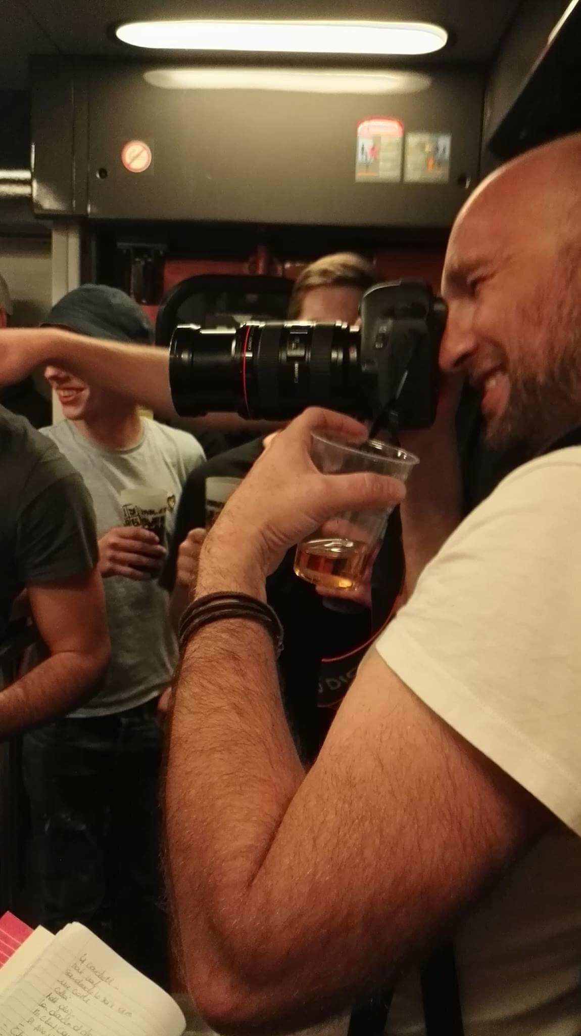 Ça parle de tout et de rien, on essaye de gérer ceux qui sont passés en forfait voyelles et on reçoit Karim dans notre loge. Ne vois dire pas à son nom, c'est bien lui l'américain qui se forcera pas pour descendre quelques verres avec nous. Puis arrivent les journalistes de VSD en plein reportage sur les trains de nuit, ils ne seront pas déçus. Le photographe ne refusera d'ailleurs pas l'apéro toute la nuit, vraiment bon esprit et se fera plaisir niveau photos avec en point d'orgue les fesses de Koziello.