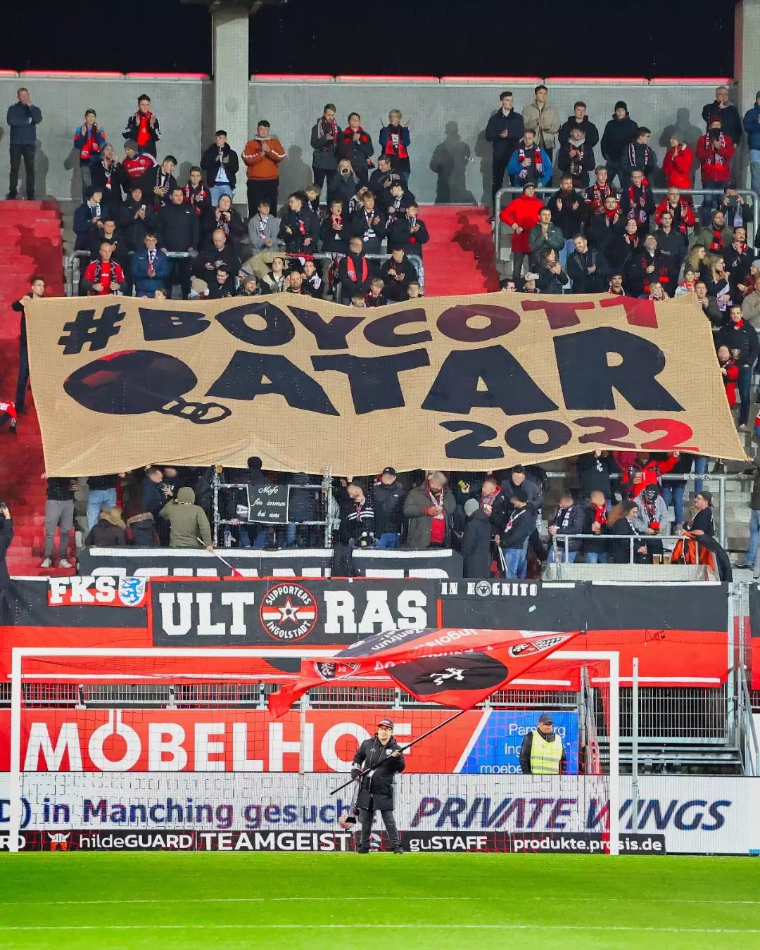 lors du dernier match contre Halle (dans le cadre d'une journée nationale d'appel au boycott des ultras allemands)