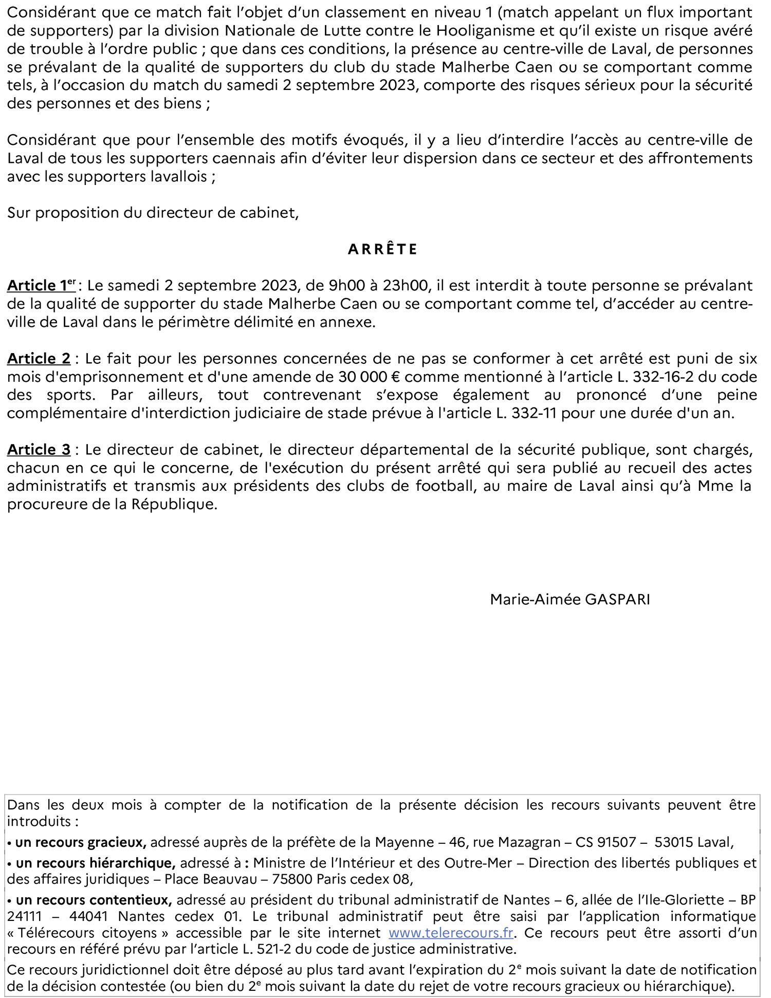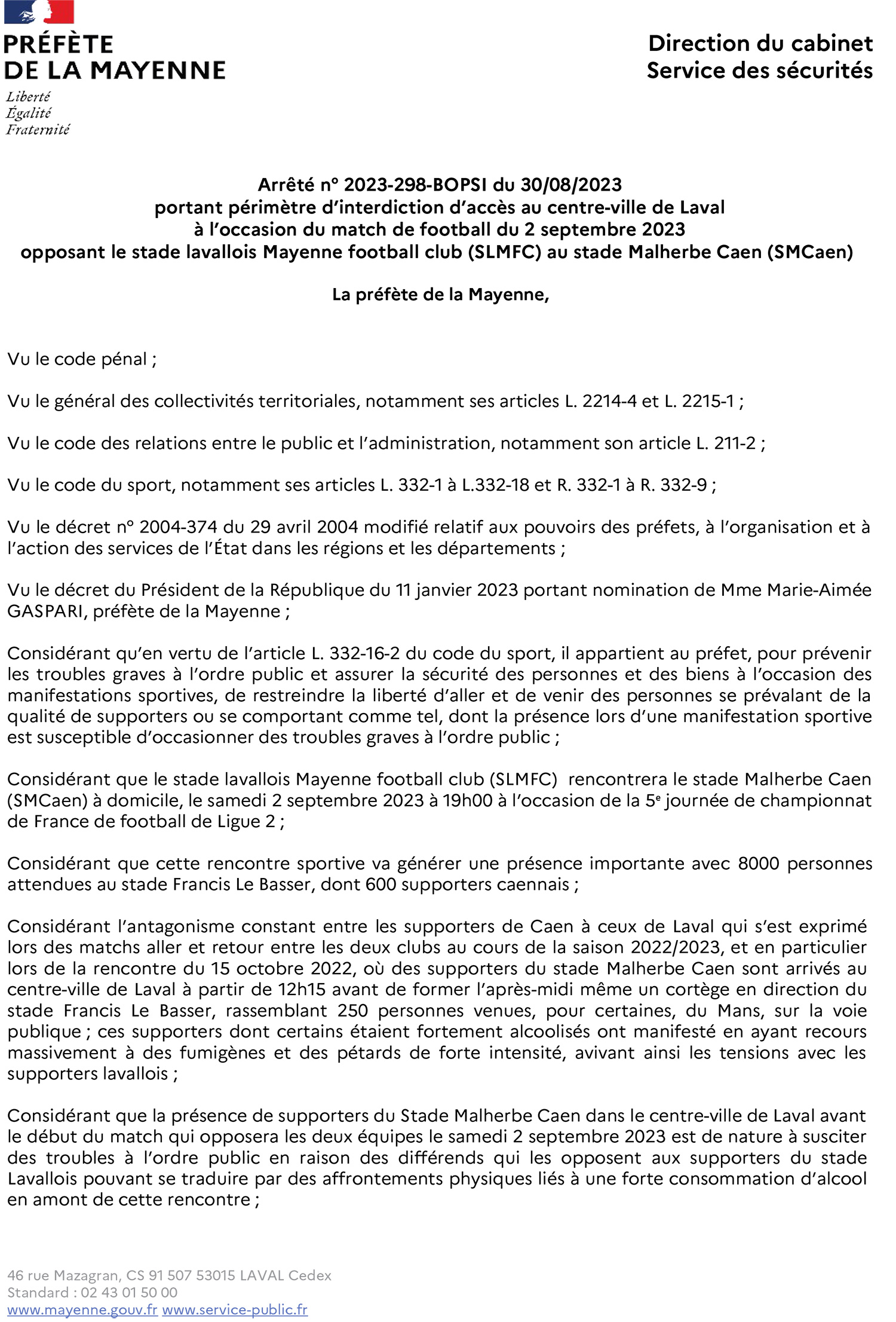 arrêté préfectoral interdisant un cortège à Laval