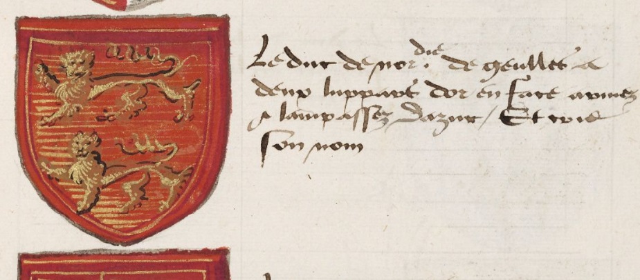 Armoiries normandes à deux léopards dessinées entre 1400 et 1600