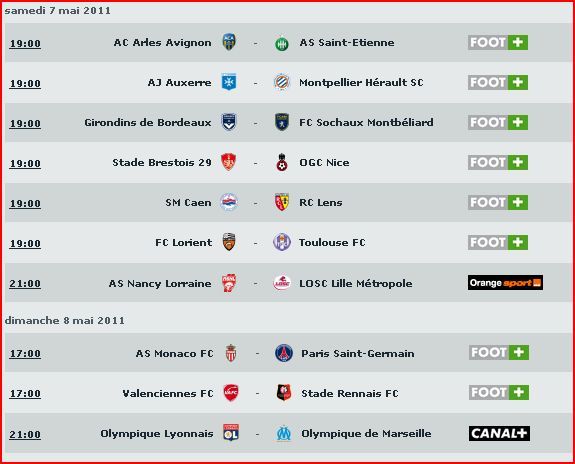 mardi 10 mai 2011 21:00 AS Saint-Etienne - LOSC Lille Métropole