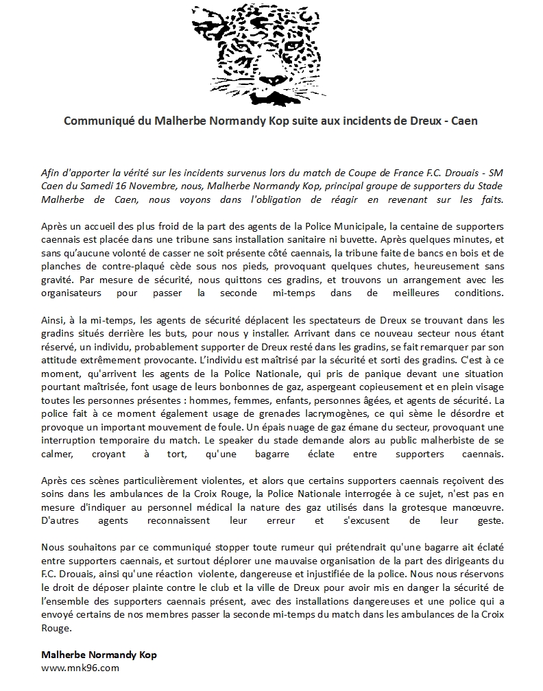 Re: Communiqué suite aux incidents de FC Drouais - Caen