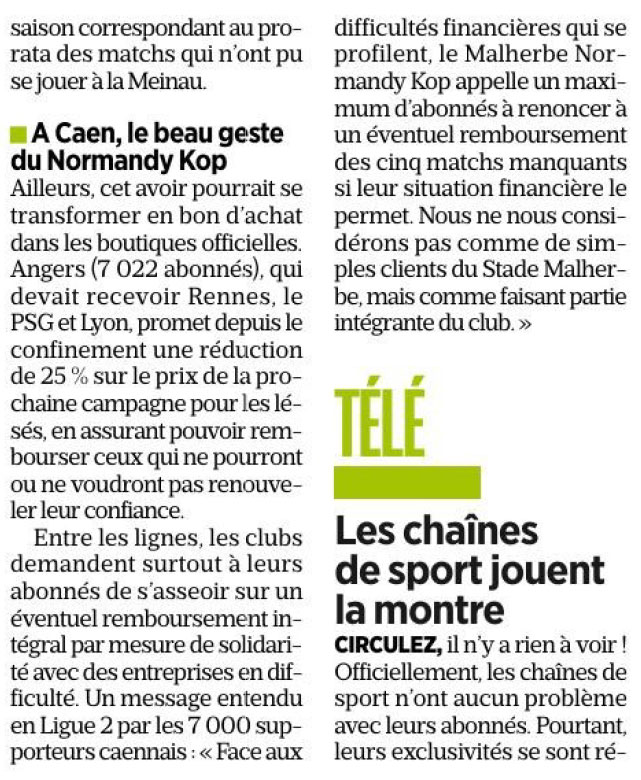 - Les supporters du SM Caen appellent à renoncer au remboursement des abonnements