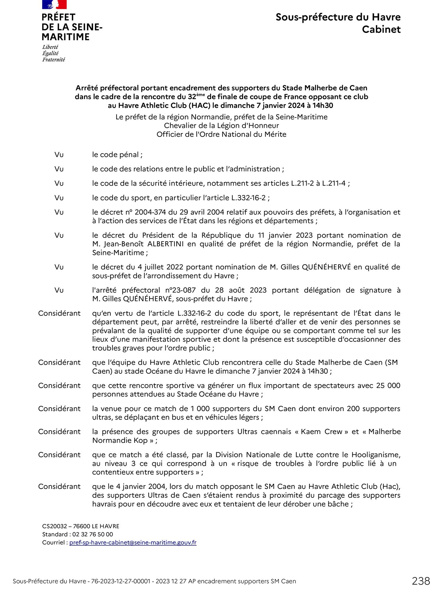 l'arrêté préfectoral